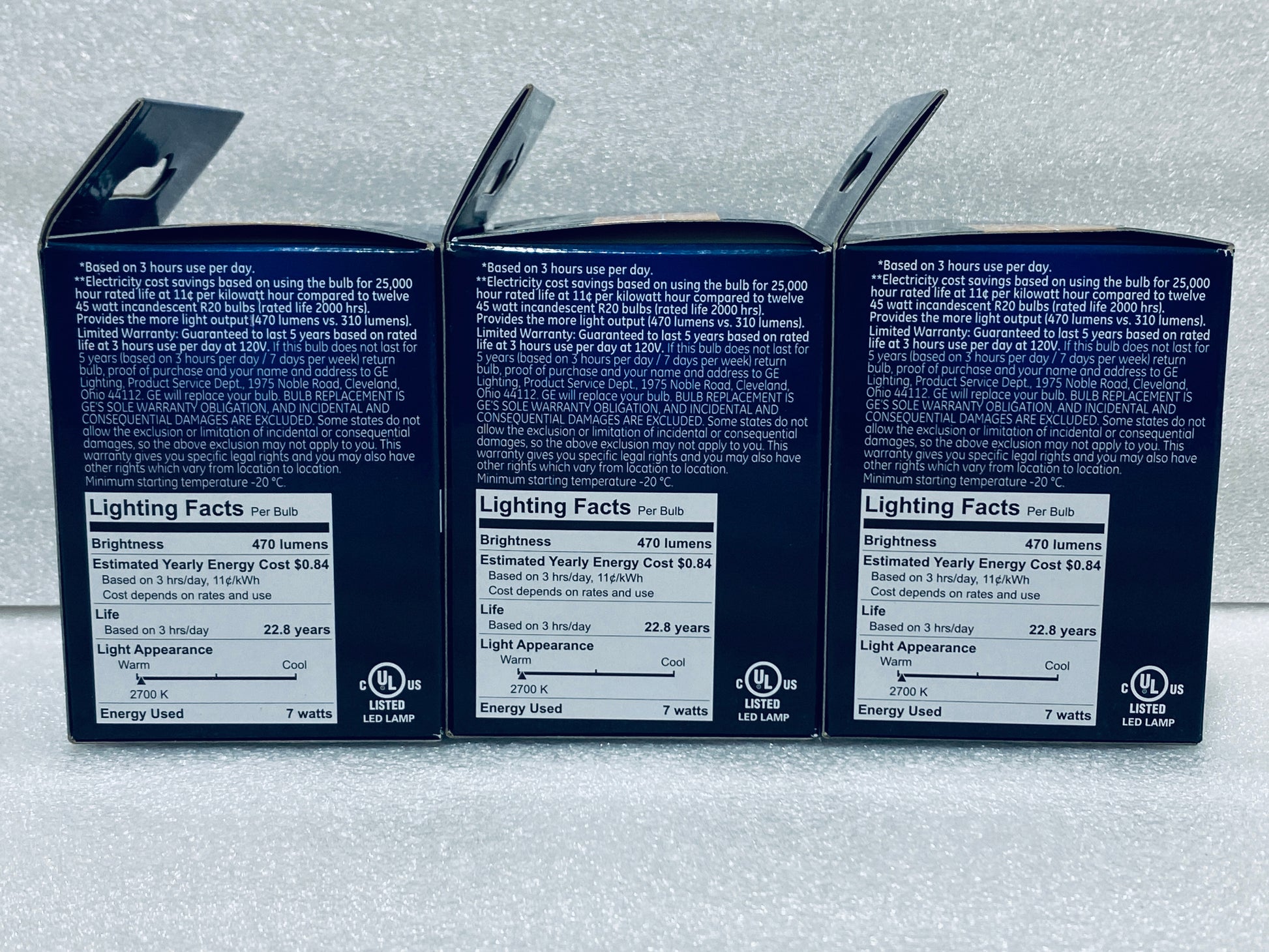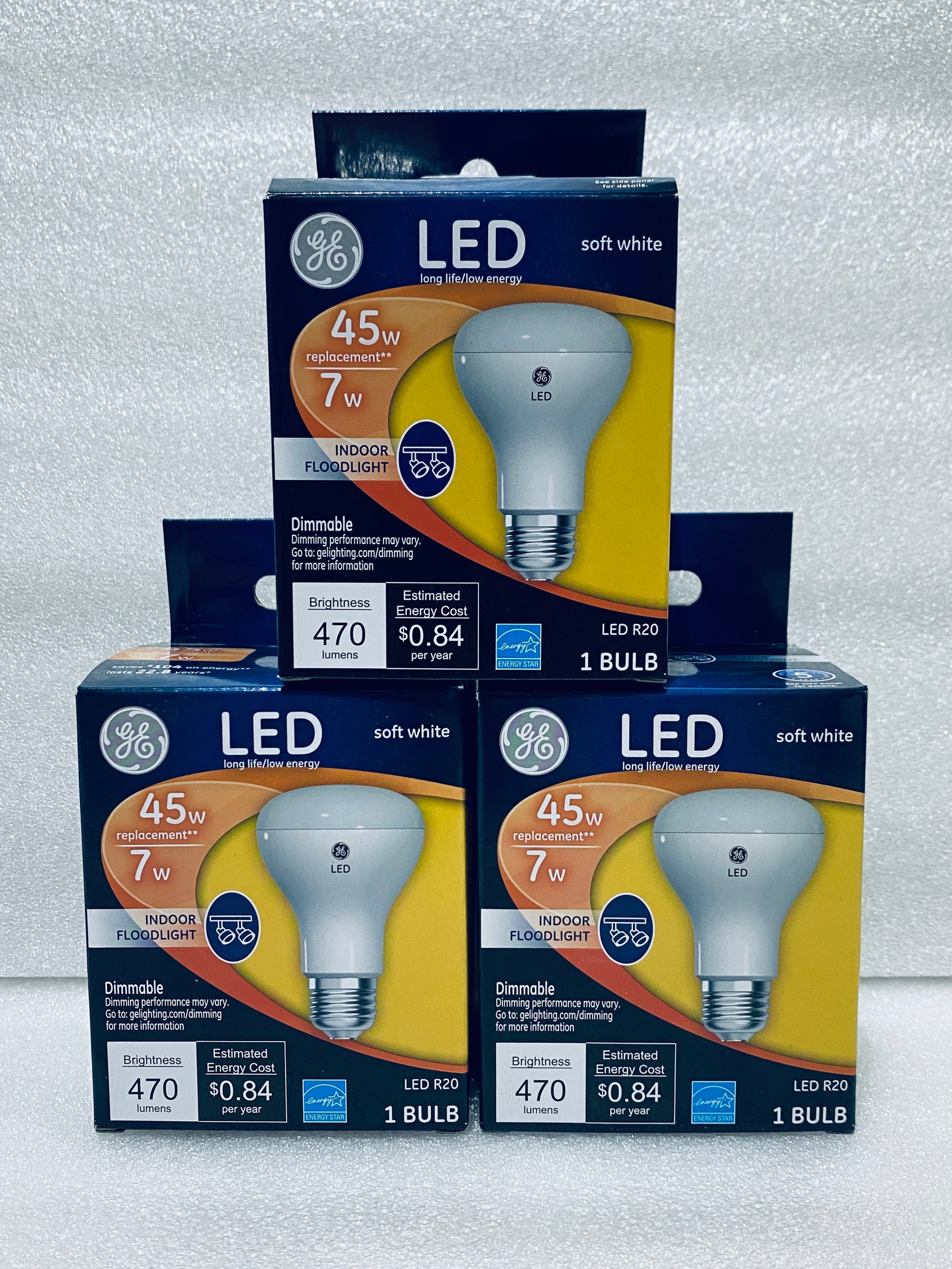 Lot of 3 New - GE LED 7W Soft White Indoor Floodlight Dimmable Bulb LED R20