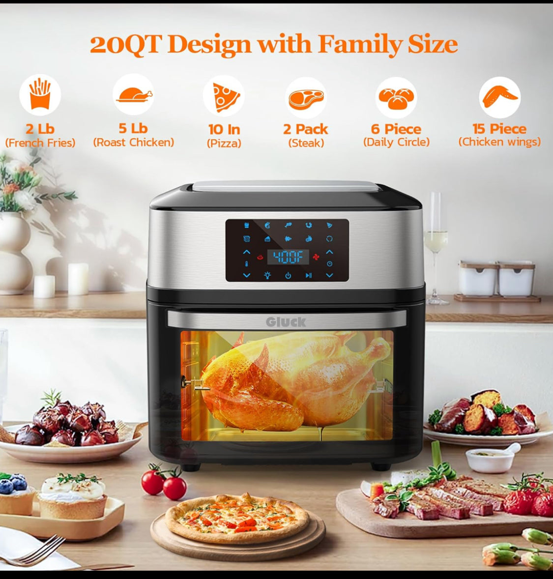 New Other Gluck 20Qt 10-in-1 Air Fryer Oven Combo with Window And Rotisserie Rack